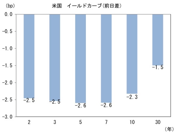 米金利はブル・スティープ化。予想インフレ率(10年BEI)は2.253%(+1.0bp)へと上昇。