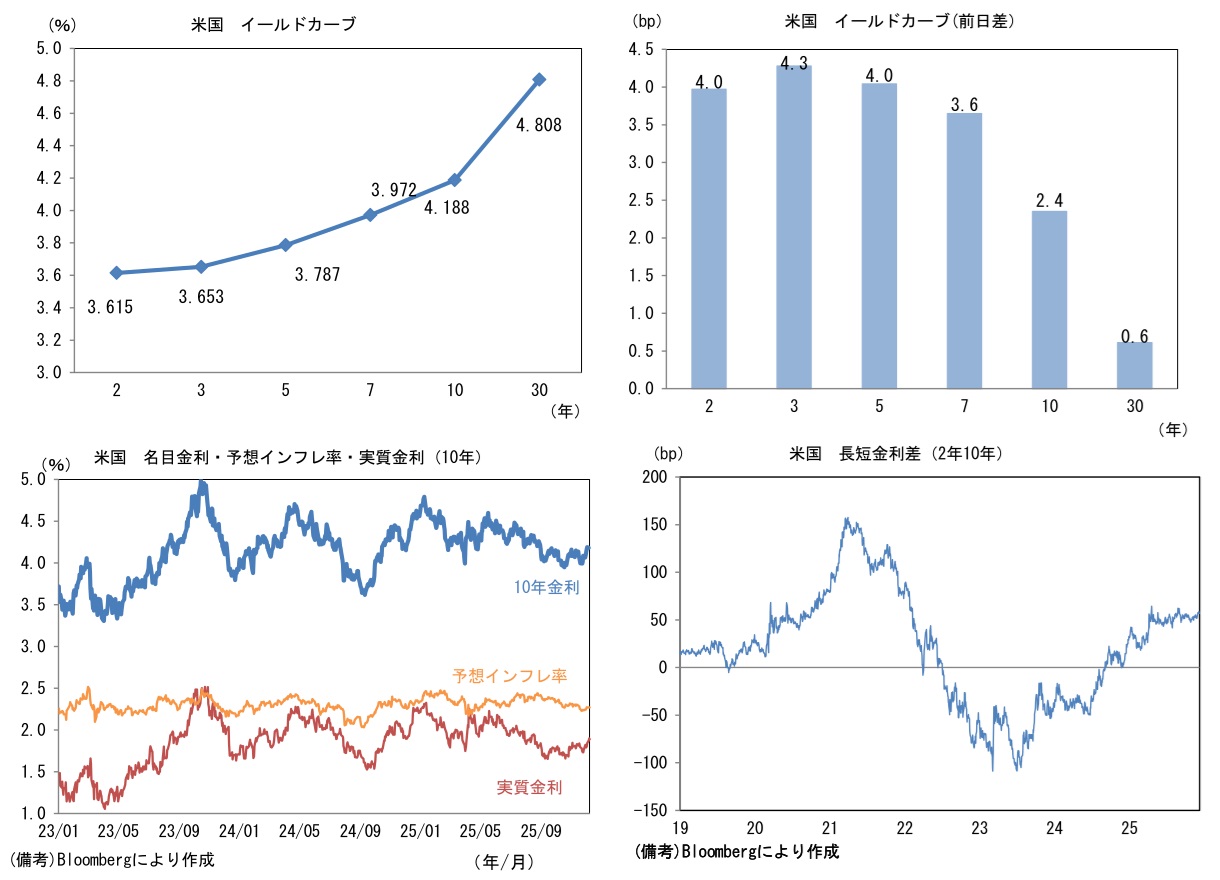 実質金利は1.900%(+2.5bp)へと上昇。長短金利差(2年10年)は+56.9bpへとプラス幅縮小。 -
