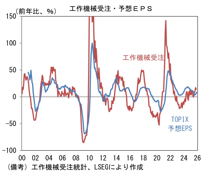 筆者が世界景気と日本株の先行きを占う上で、定点観測する工作機械受注統計(日本工作機械工業会)は、復調気配が定着してきた。通商政策に対する不透明感が後退する中、米国向けと中国向けが底堅さを増している。この間、国内の設備投資計画も堅調であることを踏まえると、全体として回復の流れが頓挫する可能性は低いと判断される。