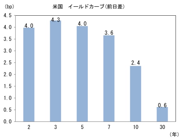 米金利はカーブ全般で金利上昇。予想インフレ率(10年BEI)は2.270%(+0.0bp)へと上昇。