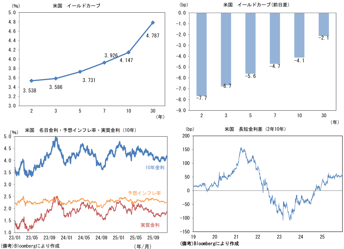 先行きの金融政策についてパウエル議長は、9月以降の利下げによって「現行の政策金利は中立金利の推計範囲内に収まっている」、「事前に決められた道筋はなく、会合ごとに判断する」とした。1月の利下げを否定はしなかったものの、距離を置いた形である。こうした「連続利下げの終わり」は市場参加者の想定通りであり、金融市場の反応は限定的であった。