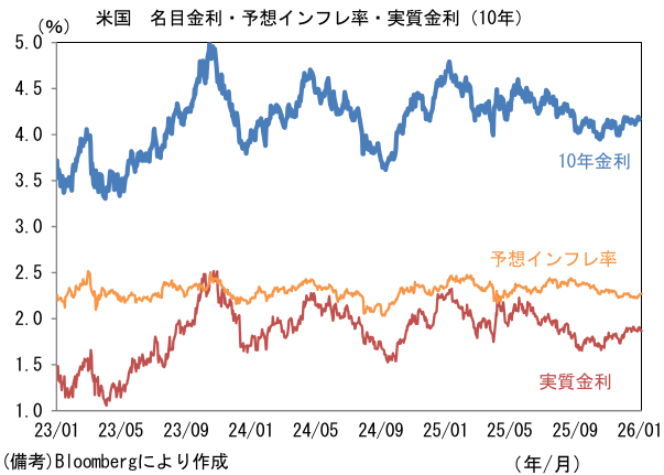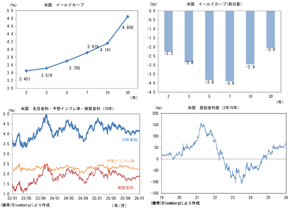 実質金利は1.869%(▲3.8bp)へと低下。長短金利差(2年10年)は+70.6bpへとプラス幅縮小。