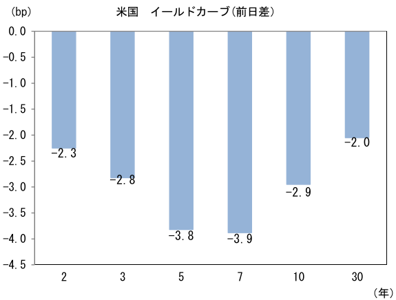 米金利はカーブ全般で金利低下。予想インフレ率(10年BEI)は2.269%(+0.9bp)へと上昇。