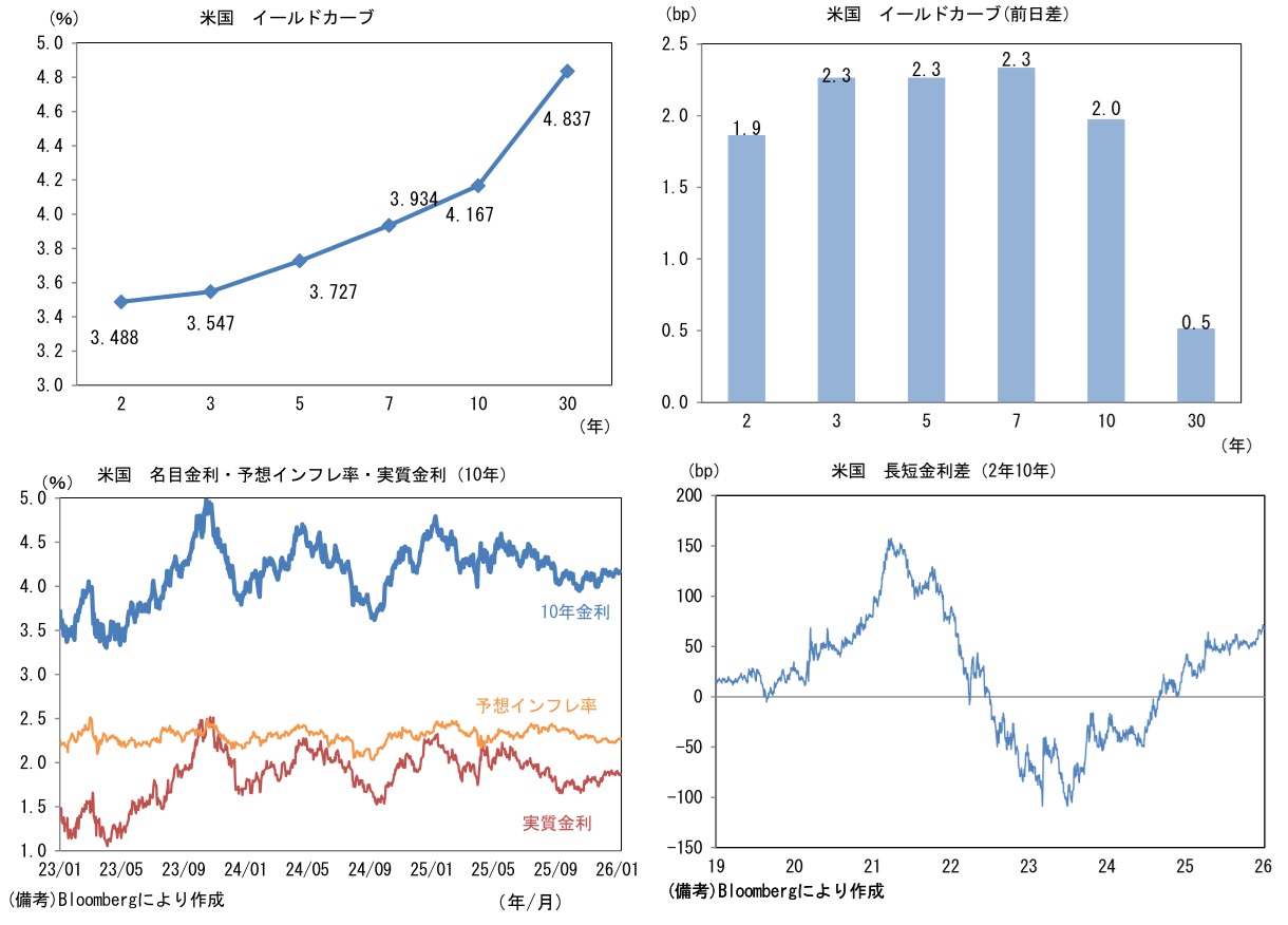 実質金利は1.871%(+1.3bp)へと上昇。長短金利差(2年10年)は+67.7bpへとプラス幅拡大。 -