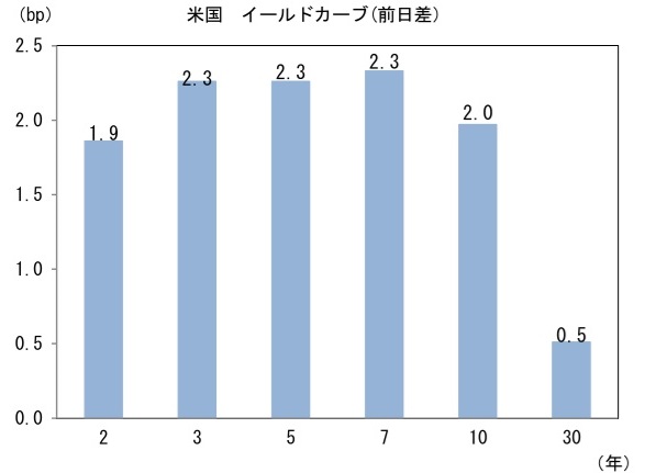米金利はカーブ全般で金利上昇。予想インフレ率(10年BEI)は2.273%(+0.5bp)へと上昇。