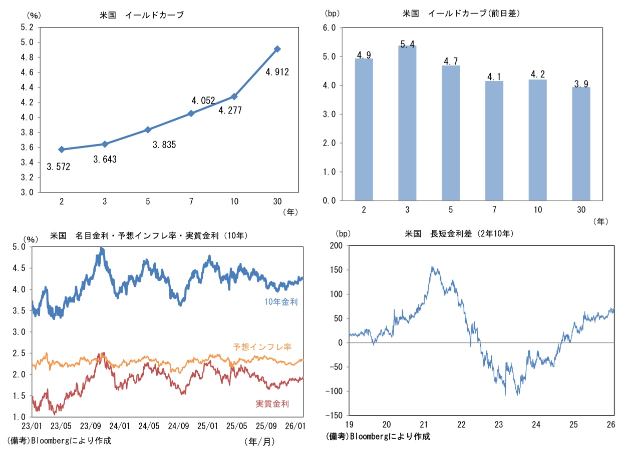 実質金利は1.935%(+4.2bp)へと上昇。長短金利差(2年10年)は+70.4bpへとプラス幅縮小。 -