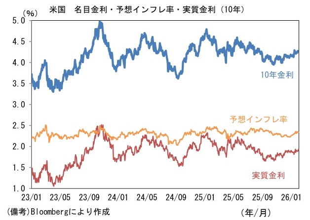 1月23日以降、円高が日本株の重荷となる場面があった。実弾介入こそなかったものの、日米政策当局によるレートチェックがあったとみられ、為替市場では協調介入が意識されている。「為替介入は効果に乏しい」というのは単独介入を前提にした話であり、協調介入であれば効果は倍以上と考えるのが自然であろう。特に円買い(ドル売り)の場合は、介入原資の上限が外貨準備高となることから、米国政府が加わることでその制約が和らぐ。ドル円は1月23日の16時半過ぎ(≒総裁会見終了時刻)に159円台前半だったものが、1月27日には152円台まで急落し、2月3日午前7時時点では155円台半ばで推移している。この間、日経平均株価は52,655円(2月2日)と直近高値(1月15日)の54,487円から下落した状態にある。