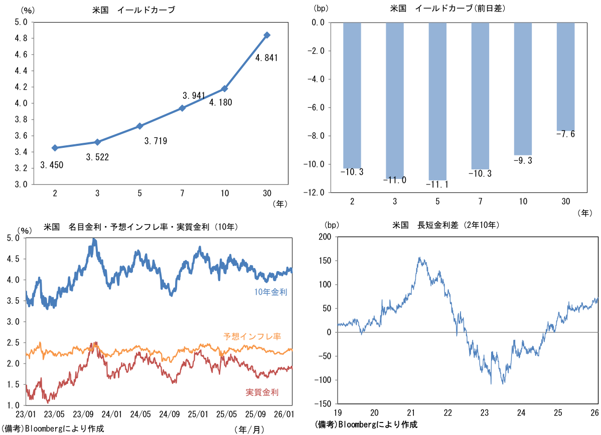 実質金利は1.872%(▲6.0bp)へと低下。長短金利差(2年10年)は+72.6bpへとプラス幅拡大。