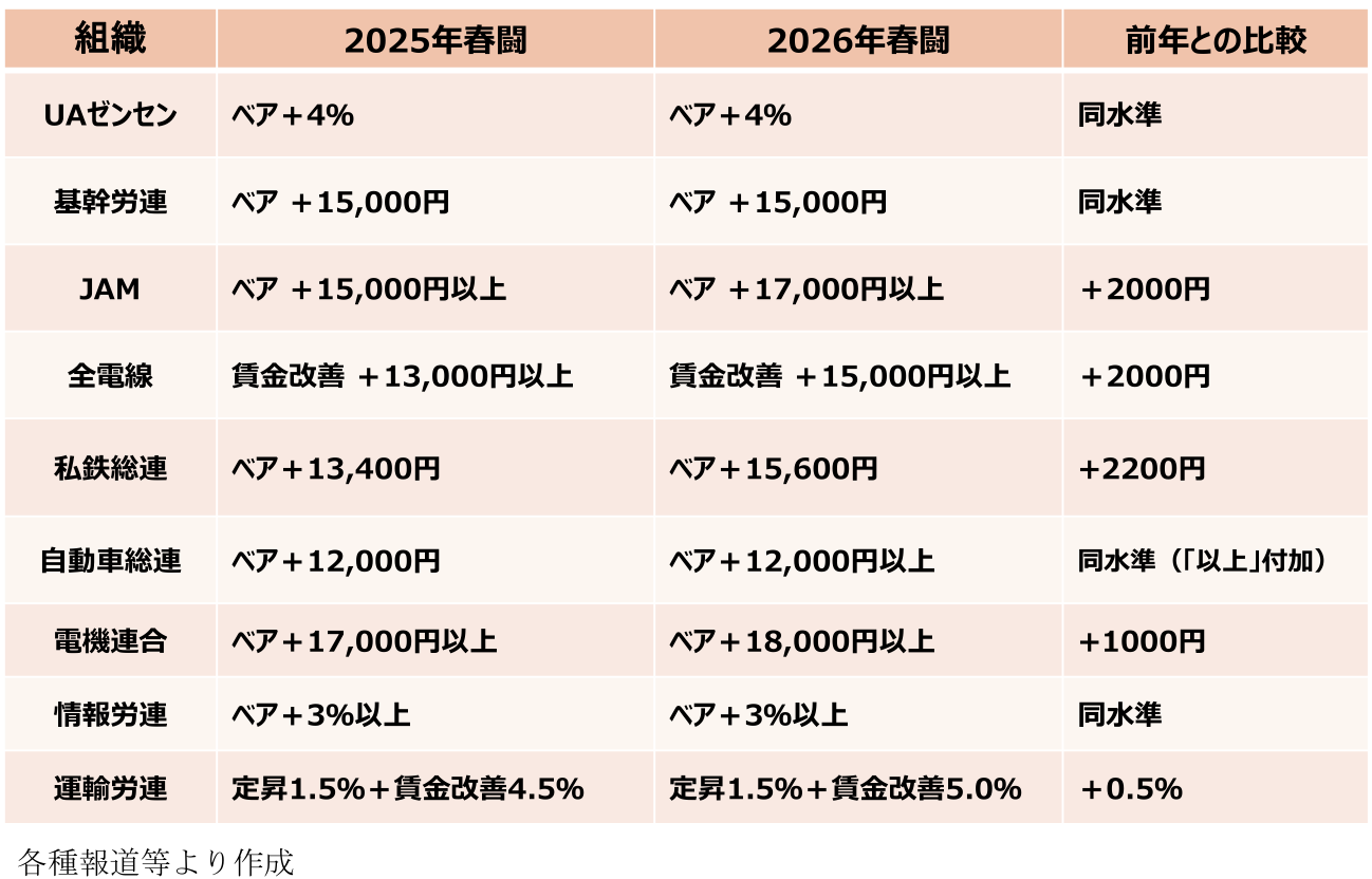 26年春闘では、前年並みの高い賃上げ実現を予想