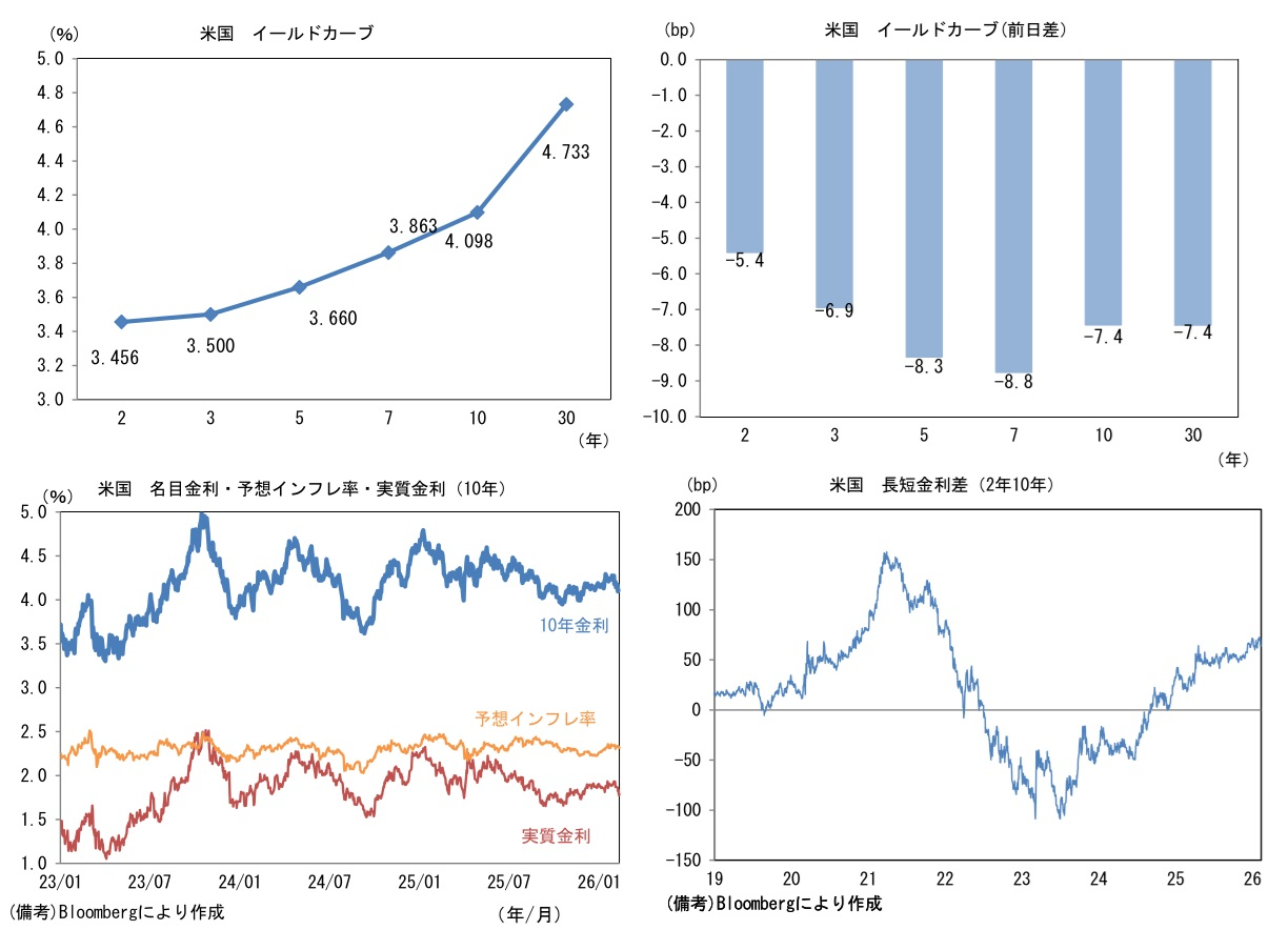 実質金利は1.779%(▲5.9bp)へと低下。長短金利差(2年10年)は+64.0bpへとプラス幅縮小。 -