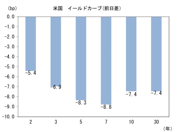 米金利はカーブ全般で金利低下。予想インフレ率(10年BEI)は2.317%(▲1.4bp)へと低下。