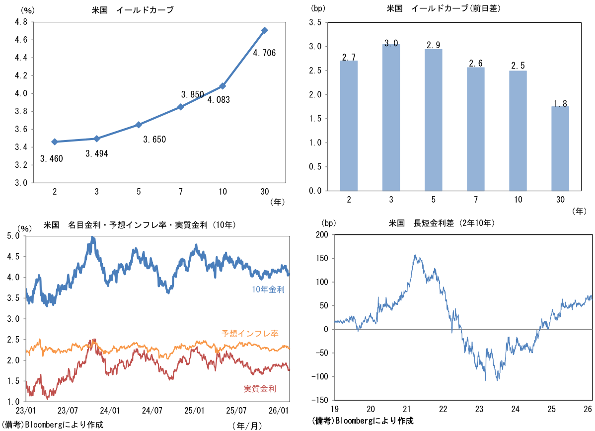 実質金利は1.788%(+0.6bp)へと上昇。長短金利差(2年10年)は+61.7bpへとプラス幅縮小。