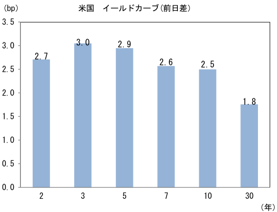 米金利はカーブ全般で金利上昇。予想インフレ率(10年BEI)は2.293%(+1.7bp)へと上昇。