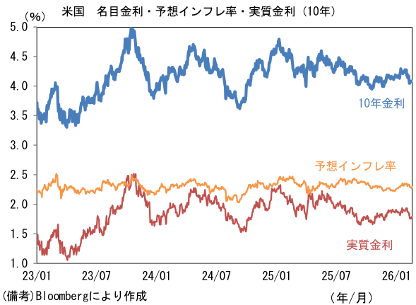インフレ下で財政支出を拡大させる政府と、利上げをしにくい環境に置かれた日銀。この組み合わせは、インフレ率の拡大と名目金利の低下・上昇抑制という構図のもとで、実質金利がマイナス圏で推移することを想起させる。緩和的な金融環境が維持されるもとで、株高と円安が進むのは、一定の理論的な裏付けがある。