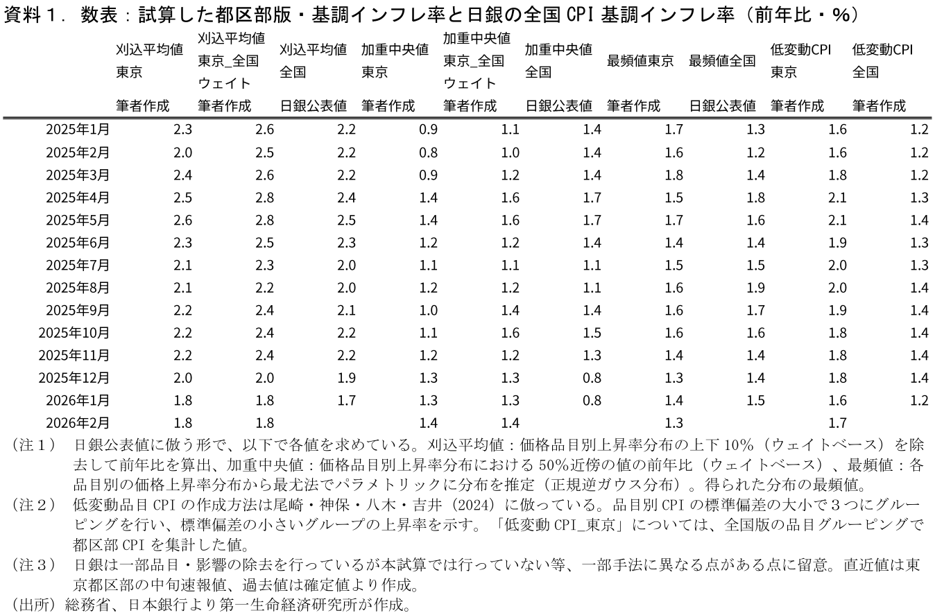 - 都区部版・日銀基調的インフレ率の試算(2026/02)
