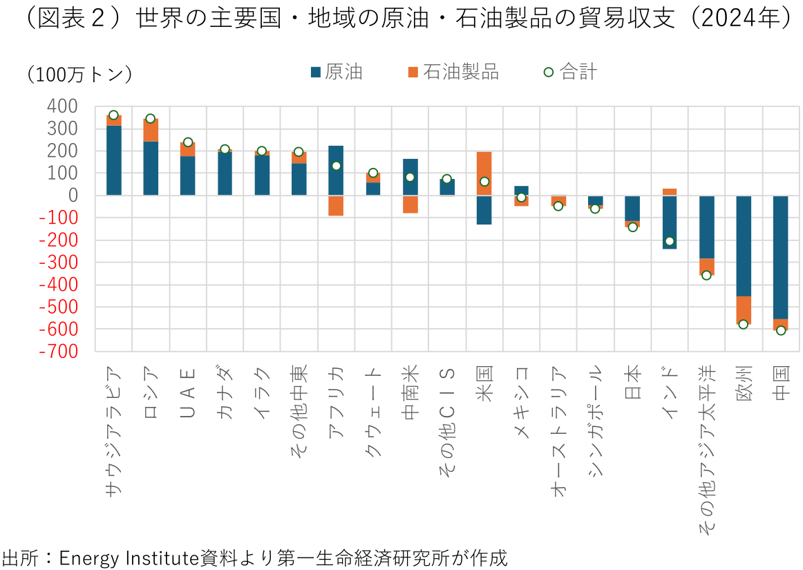 原油・ガス価格の上昇が長期化した場合、アジアや欧州を中心としたエネルギー輸入国が大きな影響を受ける。なかでも、エネルギー自給率が低く、中東産エネルギー資源への依存度が高い東アジア諸国への打撃が大きい。逆に米国、ロシア、オーストラリア、ノルウェーなど、中東以外の資源国では、資源価格の高騰や代替調達先としての需要が高まることから、エネルギー企業の収入が大幅に増え、景気浮揚と財政収支の改善が期待できる。