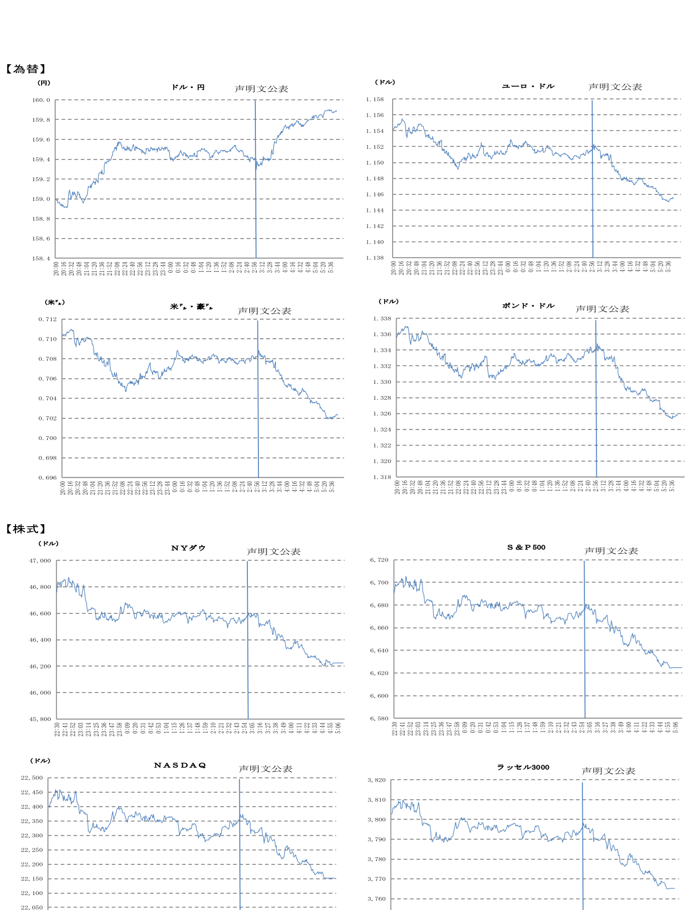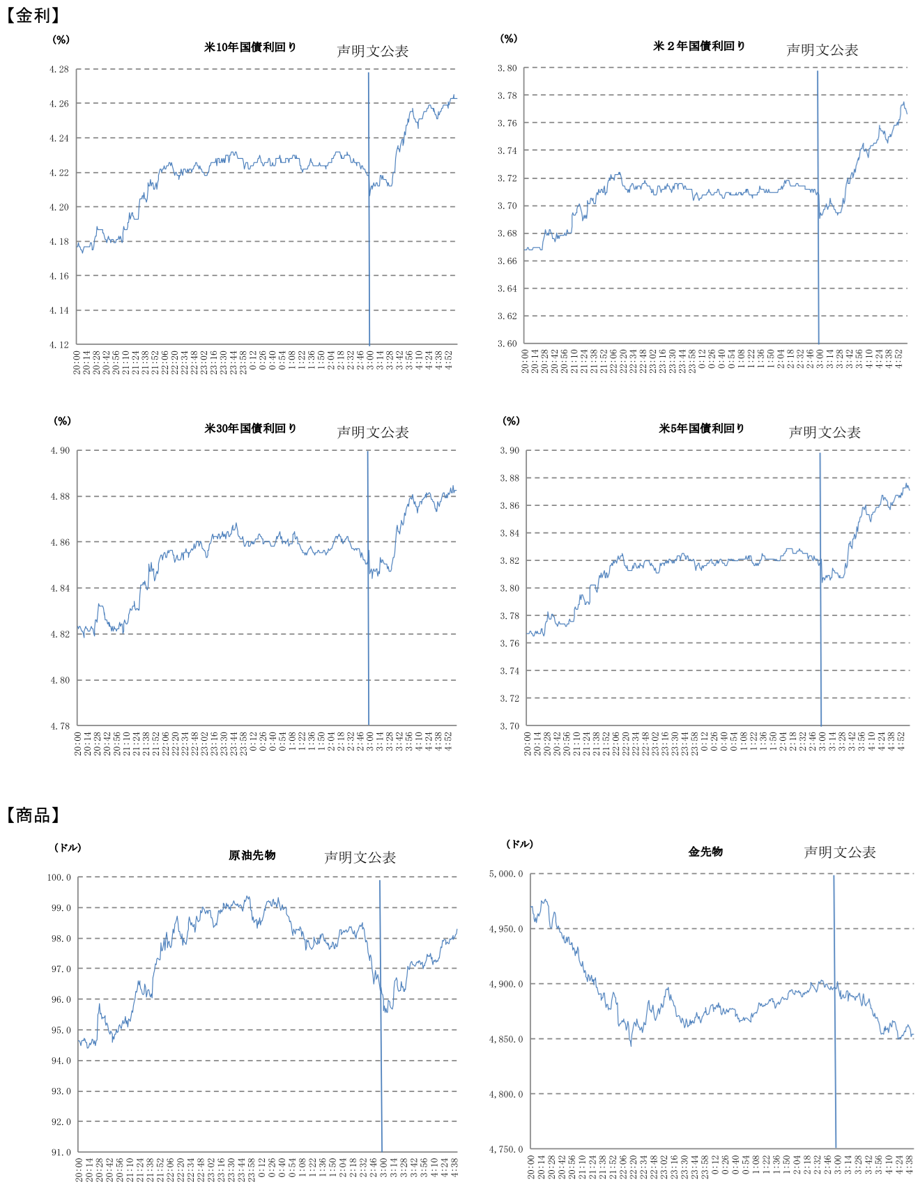 また、議長は「私たちは、入ってくるデータ、変化する見通し、リスクバランスに基づき、政策金利の追加調整の程度とタイミングを判断するのに適した立場にある」とイラン情勢の影響が不透明な中、引き続き様子見姿勢が適切な経済状況であるとの認識を示し、政策金利据え置きの決定を説明した。