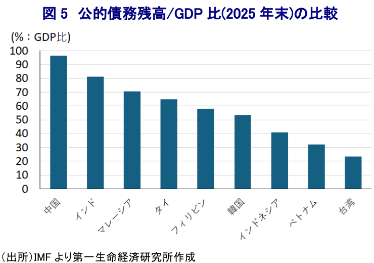 - コロナ禍で財政が悪化したアジア新興国では、エネルギー価格上昇によるインフレ圧力の高まりが財政をさらに圧迫することが懸念される。補助金の積み増しや金融引き締めへの対応が求められる一方、金利上昇による債務負担の増大により、財政運営の自律性の低下も懸念される。アジア新興国は高い成長ポテンシャルを持つものの、当面は中東情勢の不透明感に揺さぶられる厳しい局面が続くとみられる。