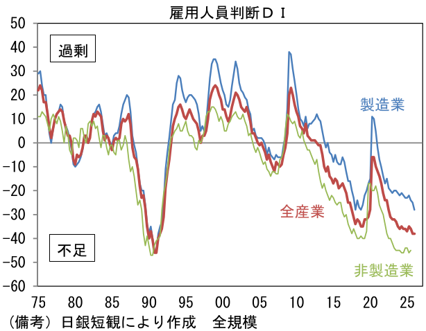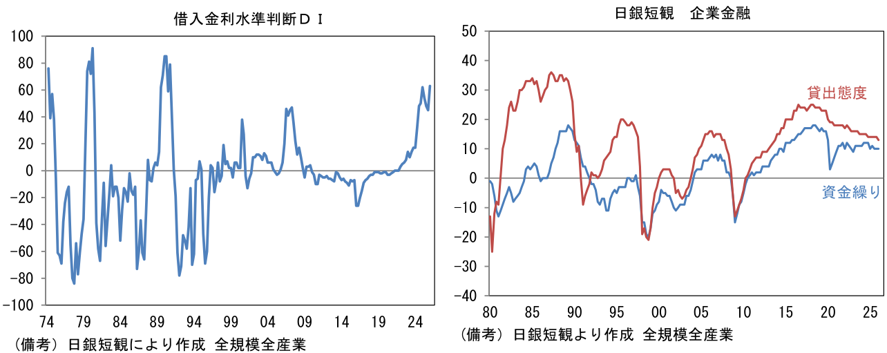 業況判断が改善した背景としては、この間、米国のAI関連投資が勢いを増したことで、日本企業の手掛けるAI関連製品の需要が誘発されたことが大きいだろう。また政策的な重要性が増している防衛(含む造船)、インフラなどでも良好な景況感が確認できた。