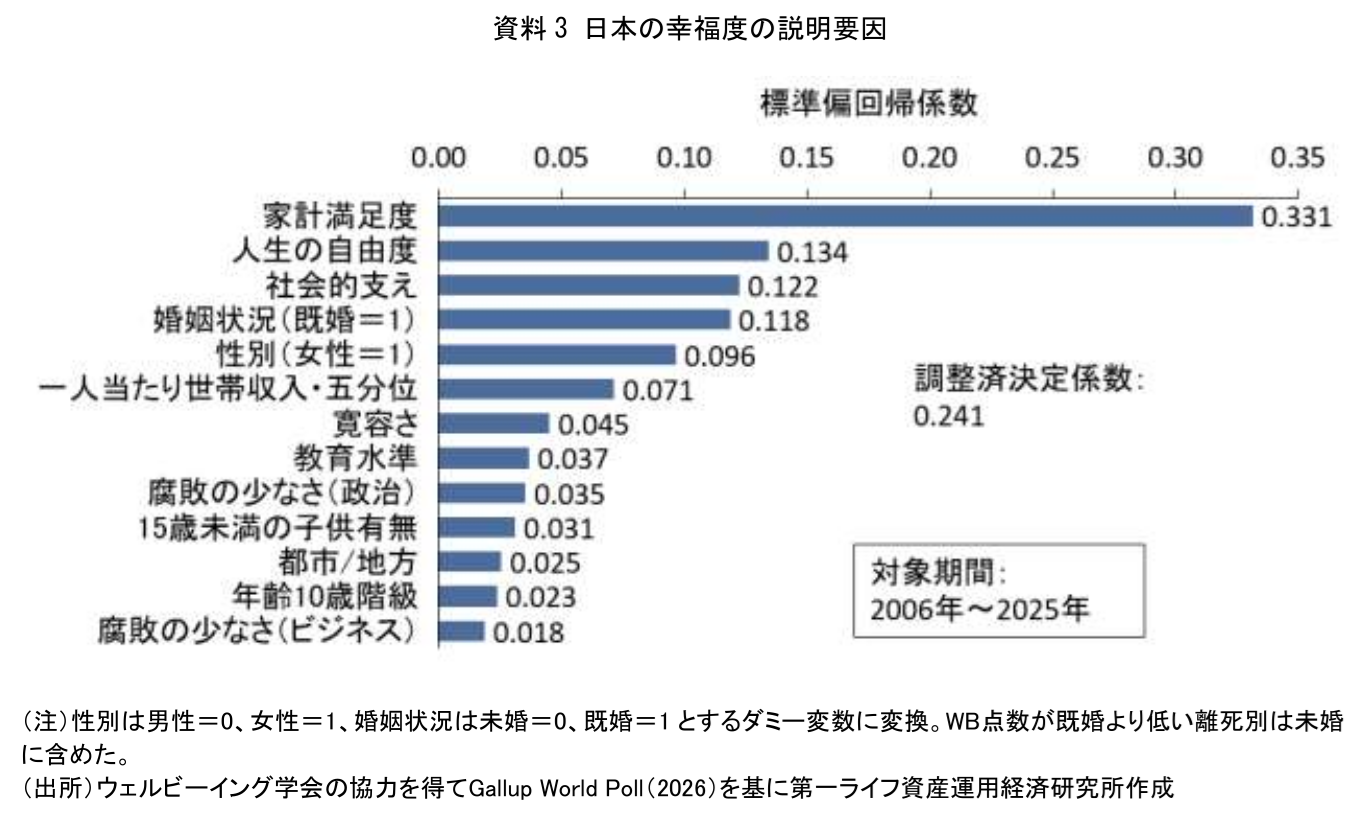 2. 日本の幸福度を説明する最大の要因はファイナンシャル・ウェルビーイングに通じる家計満足度