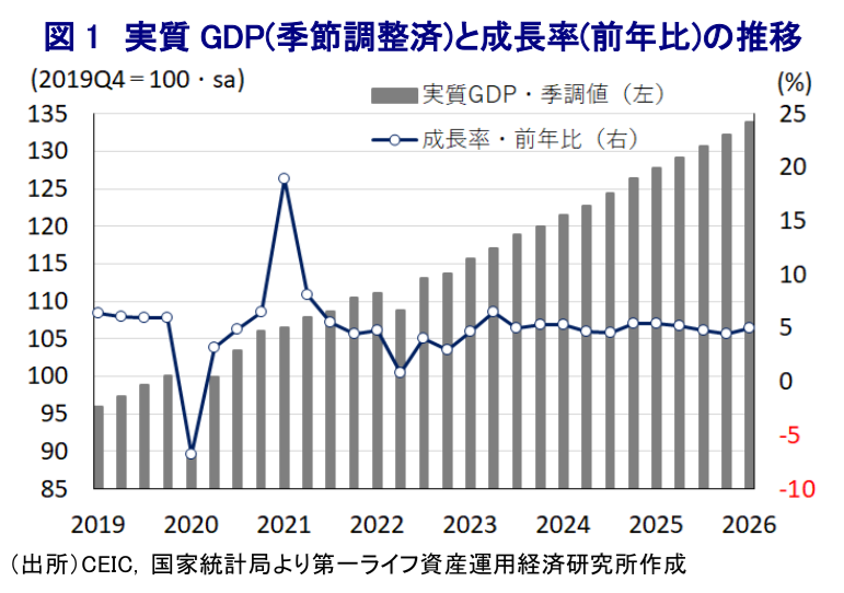 - 中国の1-3月GDPは前年比+5.0%、2026年も良好なスタートを切る