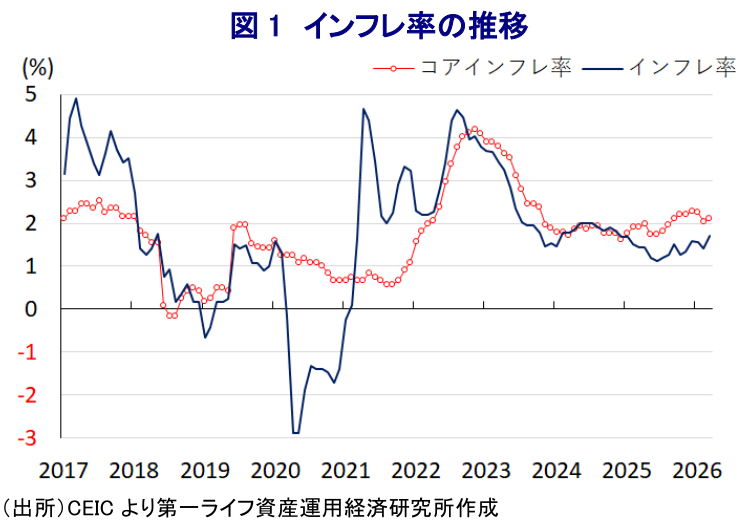 本資料は情報提供を目的として作成されたものであり、投資勧誘を目的としたものではありません。作成時点で、第一ライフ資産運用経済研究所が信ずるに足ると判断した情報に基づき作成していますが、その正確性、完全性に対する責任は負いません。見通しは予告なく変更されることがあります。また、記載された内容は、第一生命保険ないしはその関連会社の投資方針と常に整合的であるとは限りません。