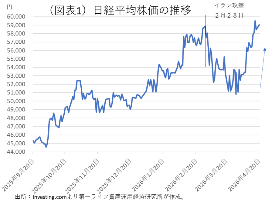 ホルムズ海峡を巡って、開放されるのか、まだまだ封鎖が続くのかが見えにくくなっている。一方、株式マーケットでは停戦合意を先取りして、株価はイラン攻撃前の水準まで戻っている。こちらは、楽観的な見方に傾いていると感じられる。株価の先行きをどう理解すればよいのだろうか。