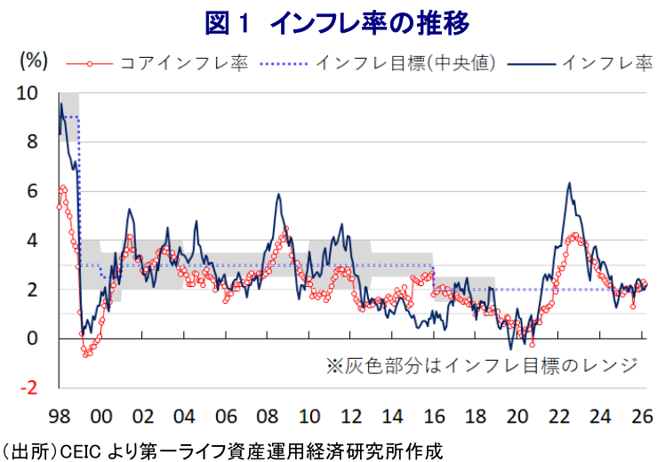 本資料は情報提供を目的として作成されたものであり、投資勧誘を目的としたものではありません。作成時点で、第一ライフ資産運用経済研究所が信ずるに足ると判断した情報に基づき作成していますが、その正確性、完全性に対する責任は負いません。見通しは予告なく変更されることがあります。また、記載された内容は、第一生命保険ないしはその関連会社の投資方針と常に整合的であるとは限りません。