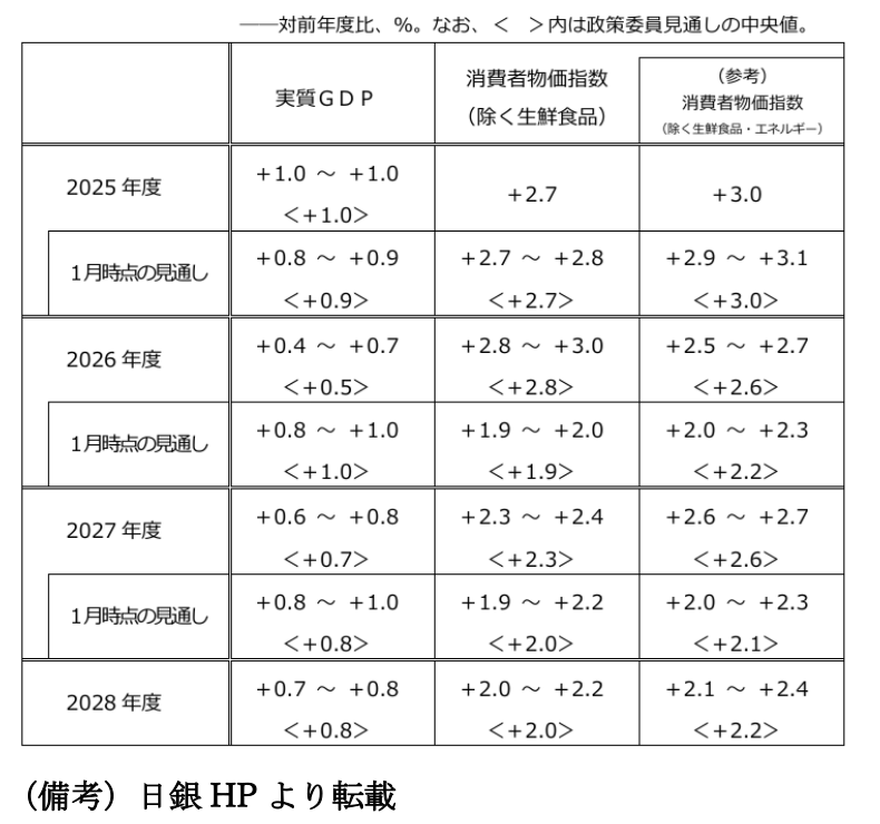 展望レポートの物価見通しは筆者を含む多くの専門家にとって上方サプライズであった。しかも物価見通しは、原油先物を参考にドバイ原油価格が1バレル105ドルから70ドル台程度まで下落し、サプライチェーンの大規模な混乱は生じないという、楽観的にみえる前提が置かれていた。先物価格通りに原油価格が下がらなければ、日銀の物価見通しは上振れることになる。そうした物価見通しに対して、展望レポートでは「2026年度を中心に、経済の見通しについては下振れリスク、物価の見通しについては上振れリスクの方が大きい。これらのリスクがともに高まることも考えられるが、基調的な物価上昇率が2%に近づいているなか、企業の賃金・価格設定行動が積極化していることなどを踏まえると、とくに、物価上昇率が大きく上振れていくリスクが顕在化し、それがその後の経済に悪影響を及ぼすことがないよう、十分に留意する必要がある」として、リスクバランスが上方に傾いていることを示した。高めの印象がある物価見通しがさらに上振れることを日銀は警戒していることになる。